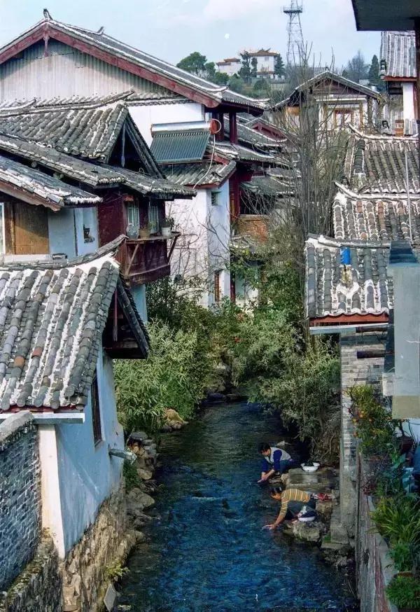 古城里还没有那么多木头搭的客栈和小酒馆,全是石砖和青瓦盖成的房子。那时候,古城还是丽江的古城,住在古城里的居民还会到河里浣洗衣服。