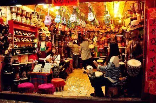 泛滥古城的非洲手鼓店,手鼓店的店主都会说那么一两句云南话,但是,他们中的大多数,都不是云南人。据说,全球非洲手鼓销量最大的地方,就是云南丽江的大研古镇。